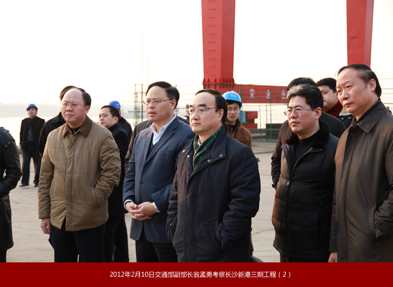 2012年2月10日,交通運輸部黨組副書記、副部長翁孟勇來長沙新港考察時強調:長沙新港變化一次比一次大,當前要借助湖南加大水運發(fā)展力度的有利契機,加快樞紐、港口和湘江2000噸級航道提升建設,更好地服務經(jīng)濟社會和航運的持續(xù)發(fā)展。